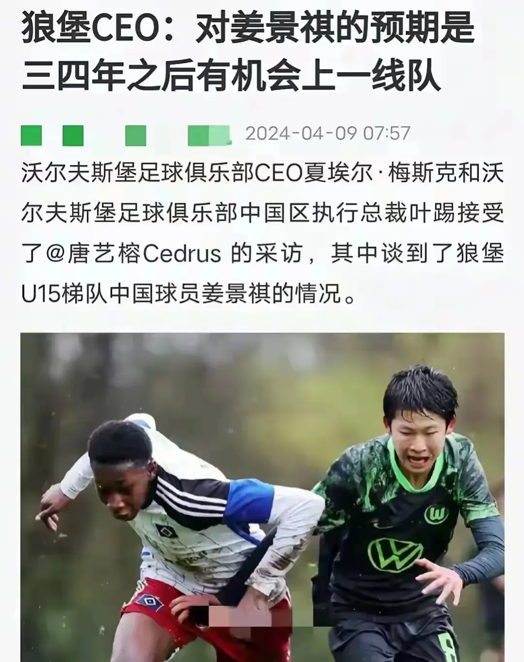 梅克斯表示:俱乐部预期是,4年以后让姜景祺进入到沃尔夫斯堡一线队,并让他逐渐适应德甲联赛节奏。从这里可以看出,姜景祺天赋和实力已经得到沃尔斯堡俱乐部高度认可,他未来踢德甲联赛很可能只是时间问题了。