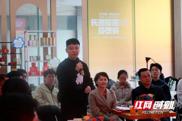高校学子代表宣读《湘才回湘倡议书》。不一样的推荐官,是芙蓉人才以青春视角讲好家乡故事,是湘籍学子以亲身经历传递家乡温度。此次恳谈会搭建起湘籍学子交流平台,让大家以“代言人”身份走进高校朋友圈,用自己的所见所闻、亲身经历,向各地青年人才推介芙蓉、邀约同行,让引才之路更有温度、更有力量。“回到家乡,我看到了芙蓉区满满的诚意和广阔的舞台;成为推荐官,我愿把家乡的好政策、好环境分享给更多同学。”中国政法大学湘籍学子肖梓萱坦言,芙蓉区为青年人才打造了优质的创业就业生态,无论是人才政策还是孵化平台,都让大家充满期待,接下来她将以家乡引才代言人的身份,向身边的同学、朋友推介芙蓉,让更多青年人才了解芙蓉、选择芙蓉。汇智育沃土恳谈会上,芙蓉区解读了人才扶持与创业就业政策,发布了长沙人才会客厅2026年度活动计划,分享了扎根芙蓉的创业就业故事,从实验室到流水线的科技成果转化,到老街巷里的新消费创业,一个个鲜活的案例,让湘籍学子看到了芙蓉区的发展活力与创业机遇。现场恳谈交流环节,学子们畅所欲言、各抒己见,为家乡发展建言献策,成为芙蓉区加快发展的青春智囊团。