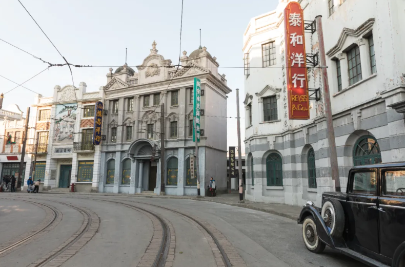 上海影视乐园的环境很复古,有很多老上海建筑和景观复刻,沉浸感十足。漫步在上海影视乐园中,仿佛穿越了时光隧道,回到了民国时期灯红酒绿的上海滩,街道上随处可见旧海报和广告牌,还有有轨电车轨道和百乐门舞厅,瞬间可以想到剧中的场景,十分熟悉,细细感受老上海的风情。