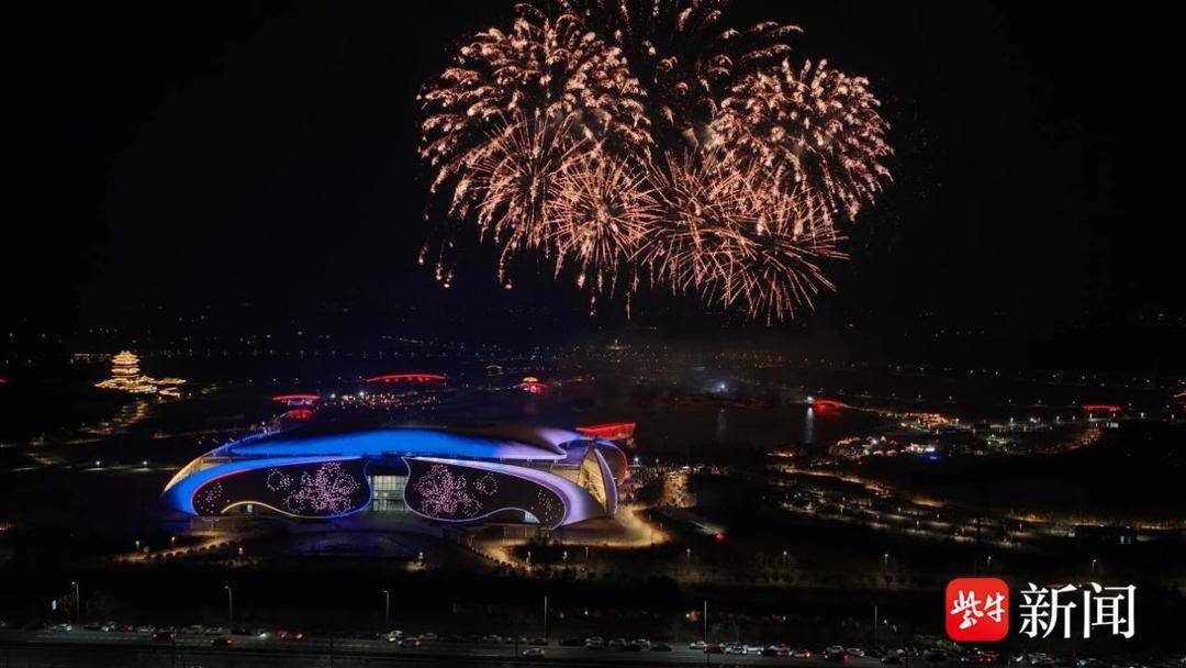 跨年夜的园博园成为“顶流”打卡地,“焰舞港城,大圣启新”跨年盛典吸引3.16万人次参与。市郎图高跷巡游、十余米鱼灯夜游,户外焰火与无人机光影交织变幻,限定蓝色烟花在夜空绽放,千盏孔明灯同步升空,承载着各地游客的新年心愿。与此同时,孔望山巅民谣悠扬,DJ与MC带动全场氛围,电子孔明灯与万家灯火遥相辉映;刘志洲山体育公园的脱口秀、篝火电音燃动山谷,零点烟花为跨年夜画上圆满句号。