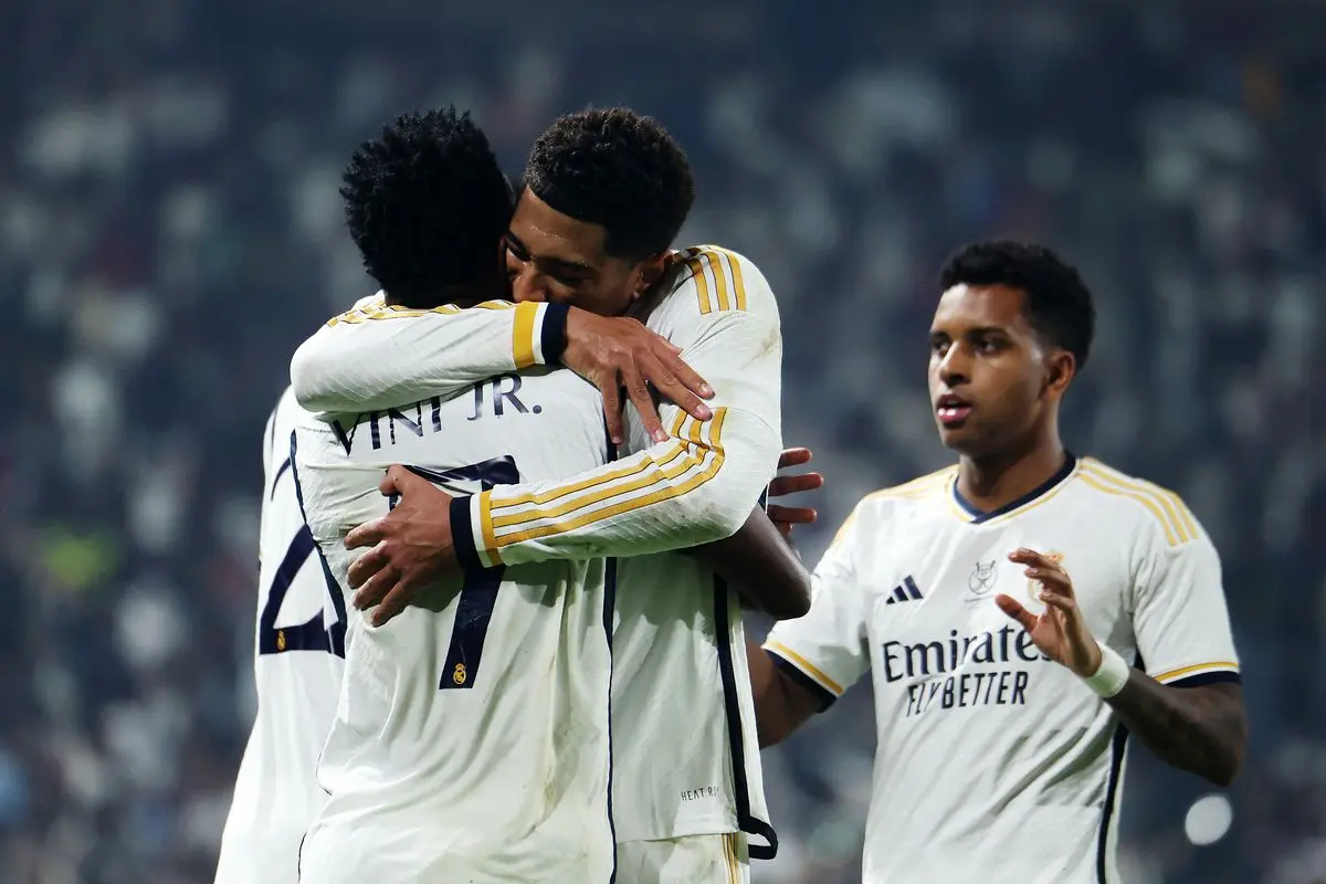 皇马(4231):库尔图瓦/巴尔韦德、赫伊森、劳尔-阿森西奥、卡雷拉斯/居莱尔、琼阿梅尼/罗德里戈、贝林厄姆、维尼修斯/姆巴佩